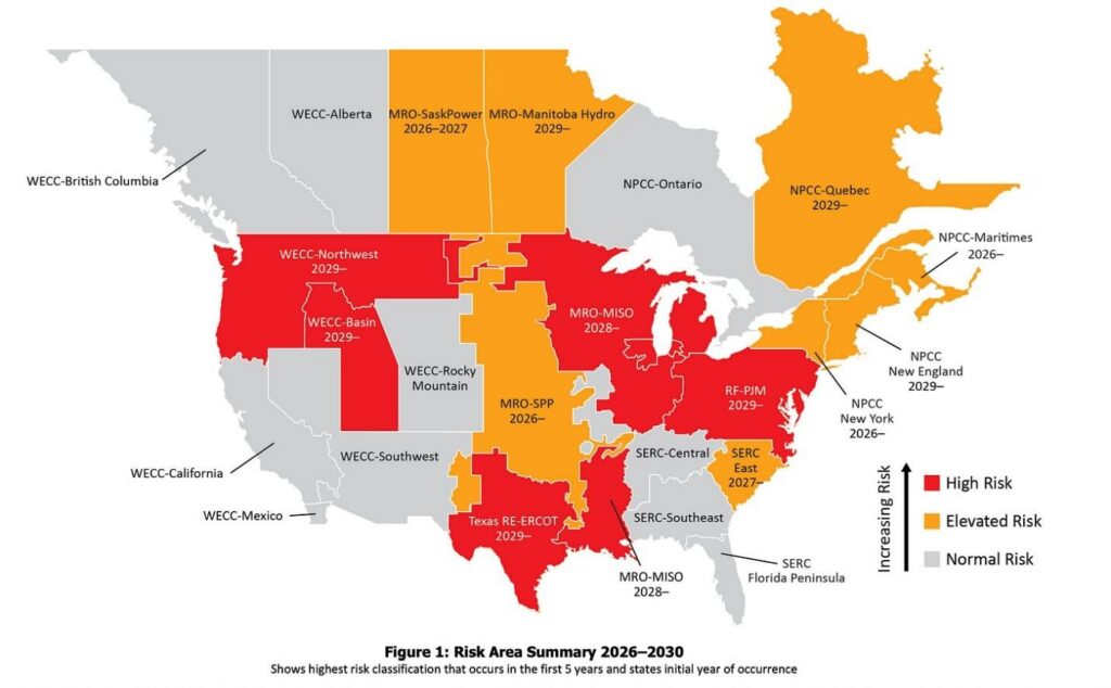 Though PJM, and the United States more broadly, met energy demands throughout this storm, rising energy demand and limited supply over the next five years elevate resource adequacy risk. According to the North American Electric Reliability Corporation, planned resources as of July 2025 would result in energy shortfalls across much of the United States, including potential data center hubs like PJM, MISO, and ERCOT.