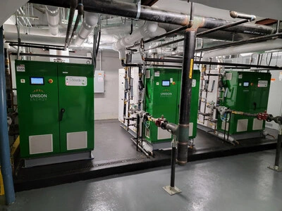 The 125 Broad Street Project provides its owners and tenants with cleaner, cheaper and more resilient cooling, heating and electricity at no upfront cost. The Energy System’s innovative design is fuel-flexible, meaning the system can run on lower-carbon alternative fuels and is compatible with Unison’s on-site carbon capture solution. Incorporating alternative fuels and carbon capture in the future would drive further improvements to the emissions profile of 125 Broad Street.